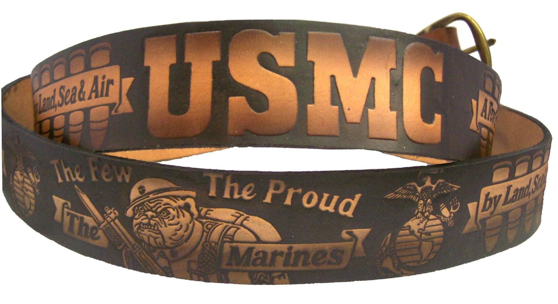 Expertly hand painted, this Marine A Few Good Men scene embossed leather belt is made with 9oz Veg tanned cowhide and a 1 1/2-inch width. With a convenient single snap for easy buckle changing, it's the perfect blend of style and functionality.