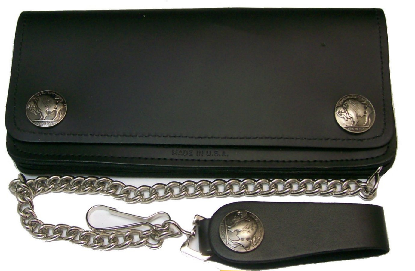 Leather chain wallet with buffalo nickel snaps