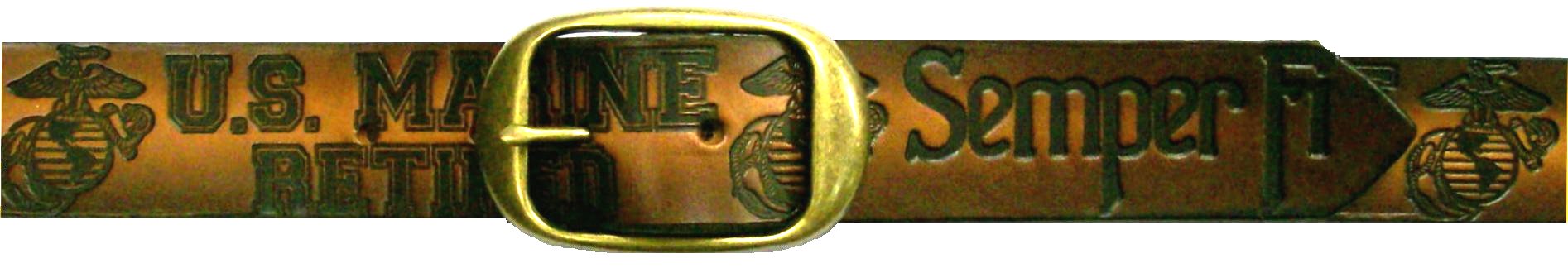 Marines Retired scene embossed leather belt