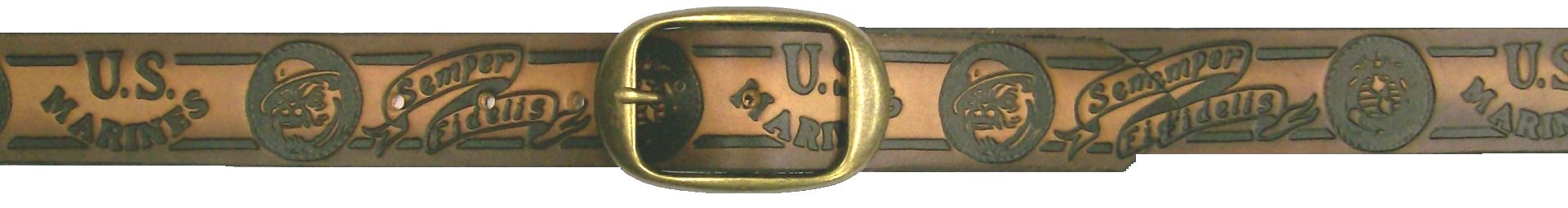 Marines Semper Fidelis Bulldog scene embossed leather belt